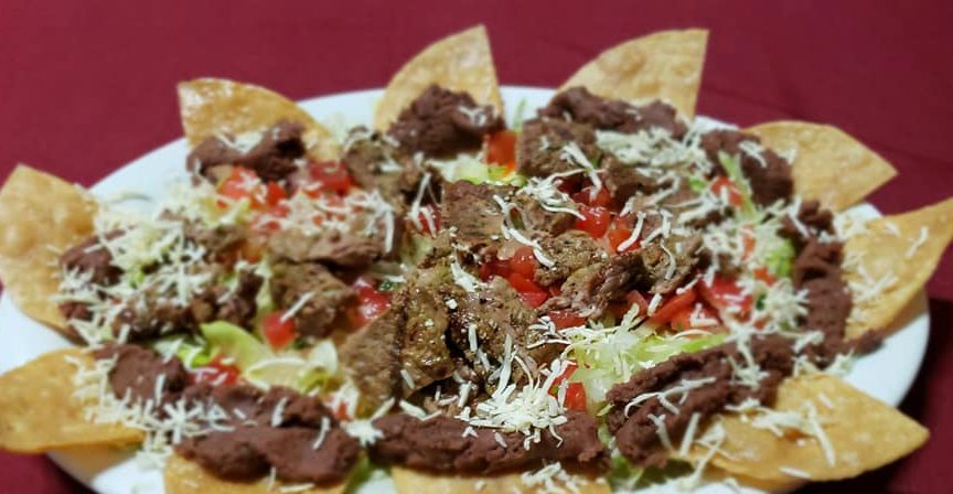 Carnitas Garcia $17.95 (6 onzas de carne asada con chips, frijoles, queso rallado,lechuga y chirimol)