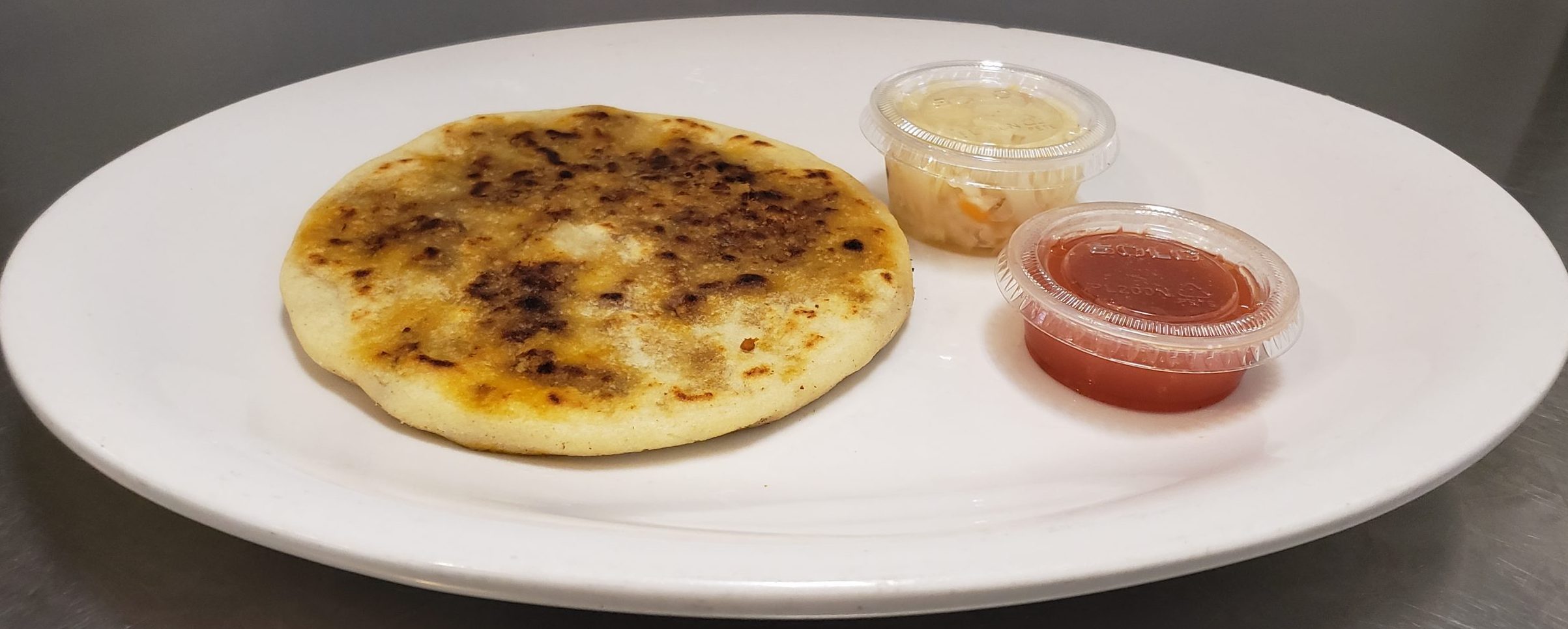 Pupusa de Chicharron Harina de maiz $3.95 Harina de arroz $4.25