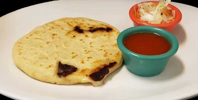 Pupusa de Res y Queso maiz $7.25 de arroz $7.50