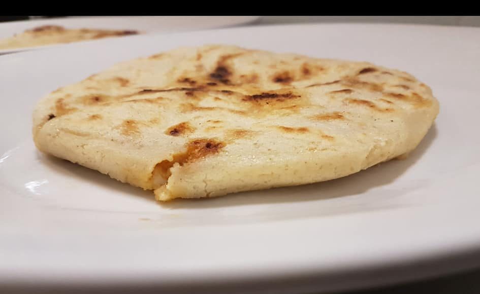 Pupusa Revuelta (Queso y Chicharron) maiz $3.75 arroz $4.00